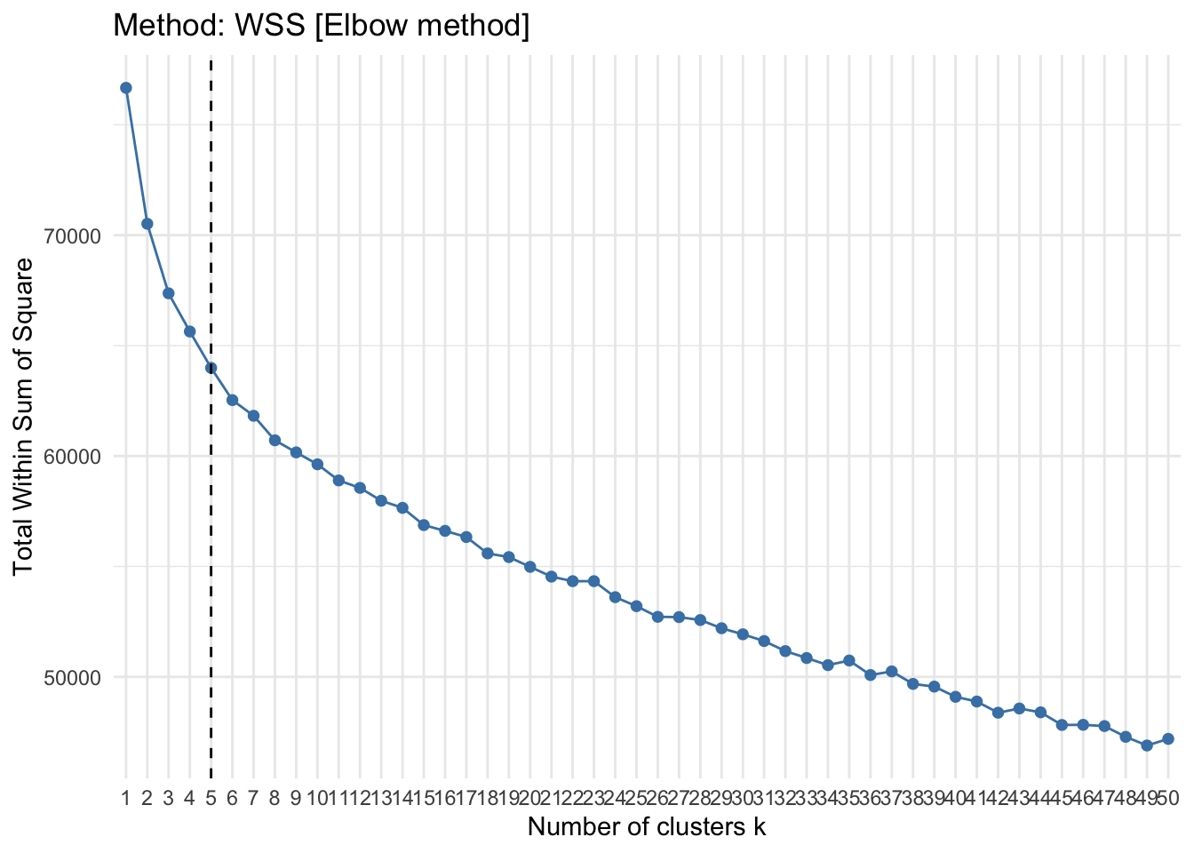 ggtitle("Method: WSS [Elbow method] ") +