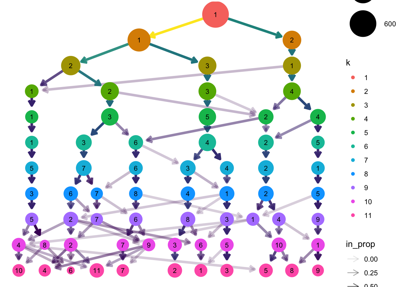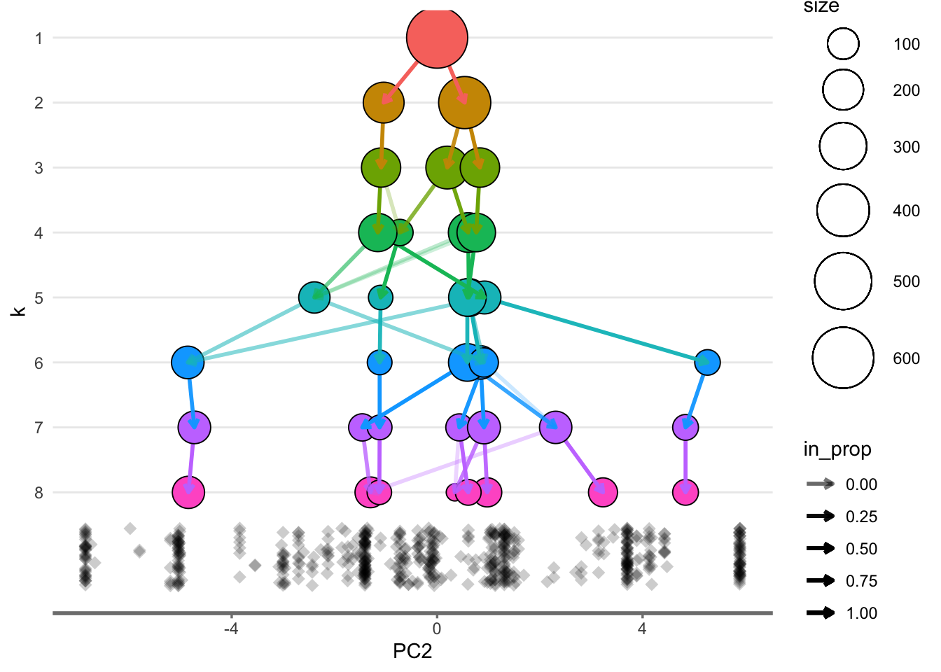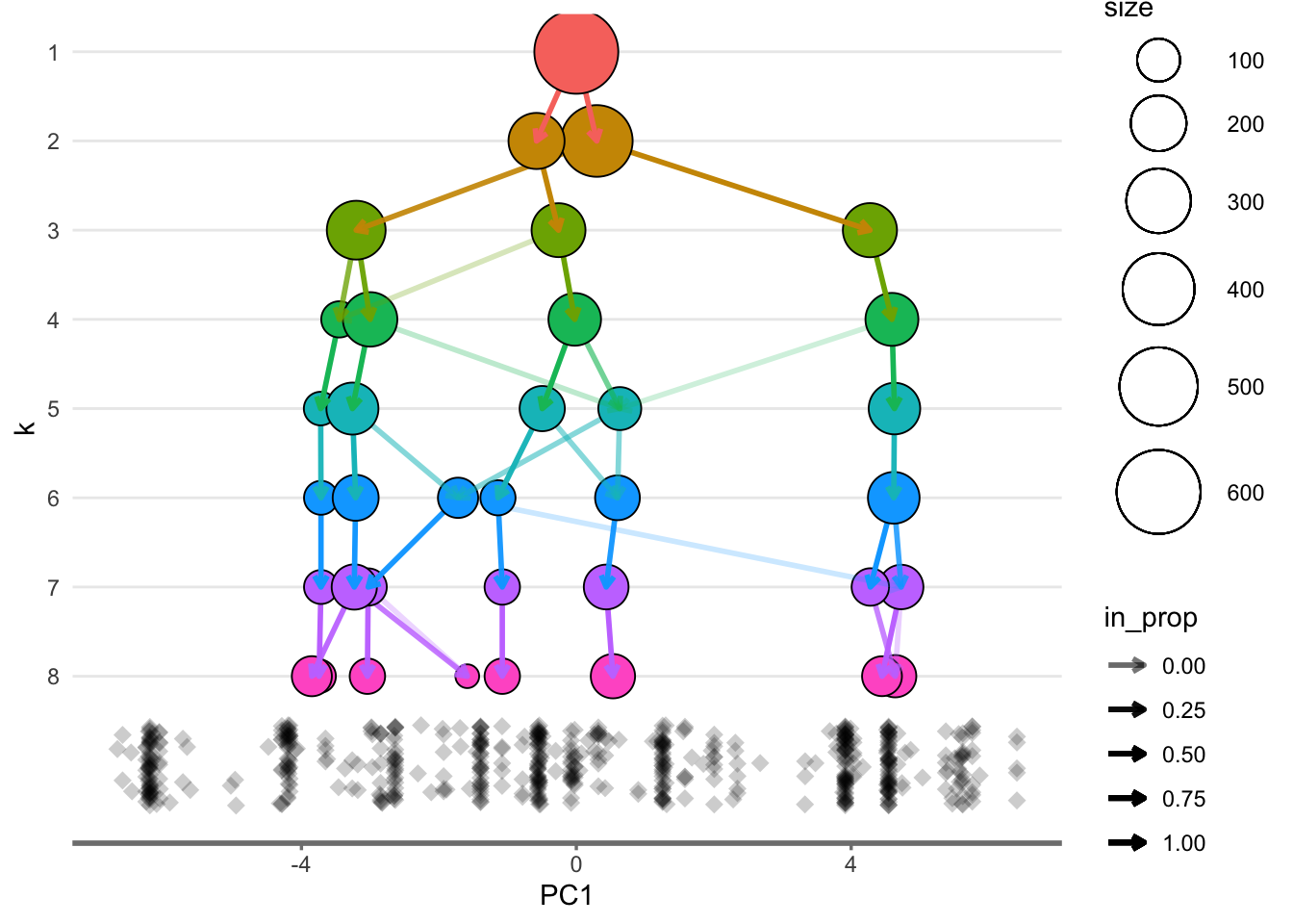 clustree(df, prefix = "k")