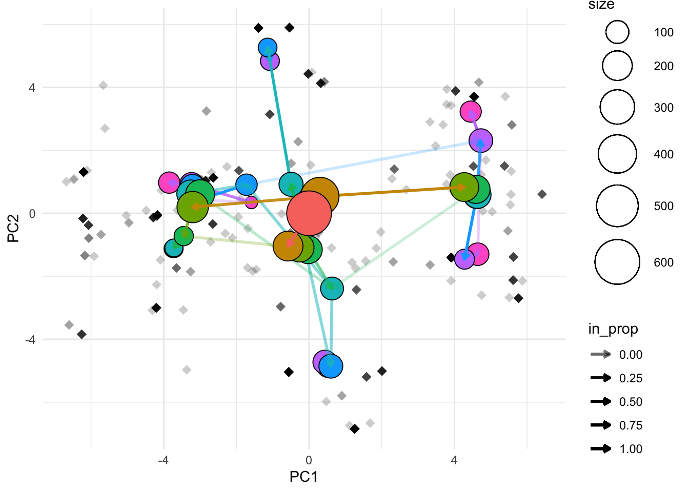 clustree_overlay(df_subset, prefix = "k", x_value = "PC1", y_value = "PC2")